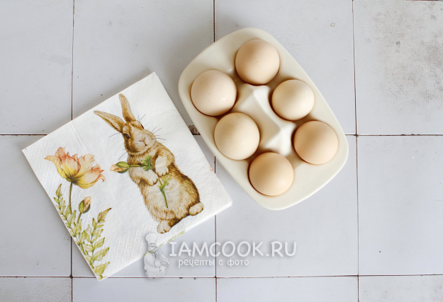 Всё, что вам понадобится для декора яиц на Пасху без краски, это сами яйца и салфетки. Количество яиц может быть разным. Я для примера задекорировала всего 4 яйца.