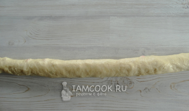 Свернуть рулет и аккуратно его растянуть в более длинный рулет, осторожно подтягивая, насколько это возможно.