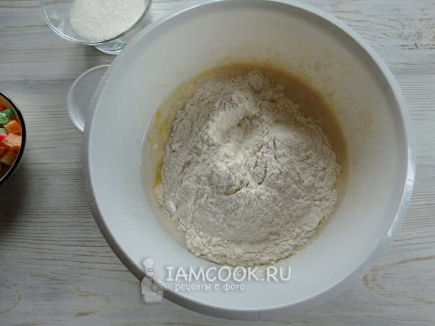 Накрыть тесто и убрать в тёплое место для подъёма примерно на 30 минут.