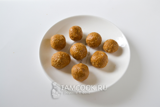 Еще раз разотрите массу, чтобы все ингредиенты соединились. Должна получиться пластичная густая масса. Если масса не пластичная, то добавьте немного стружки или пасты, в зависимости от того, какая консистенция получилась. По желанию можете добавить побольше меда, если любите сладкие конфеты. Густота арахисовой пасты, как и меда, разная, поэтому ориентируйтесь на полученный результат.