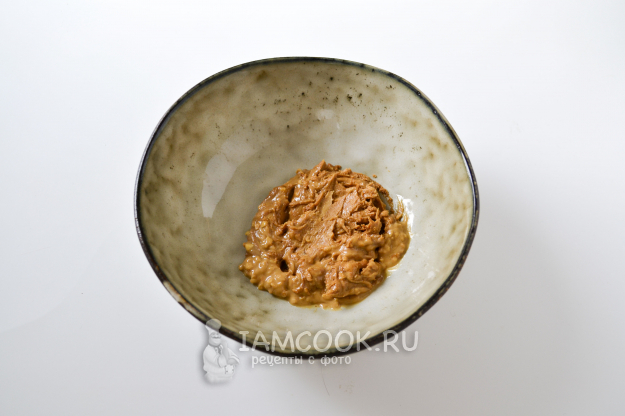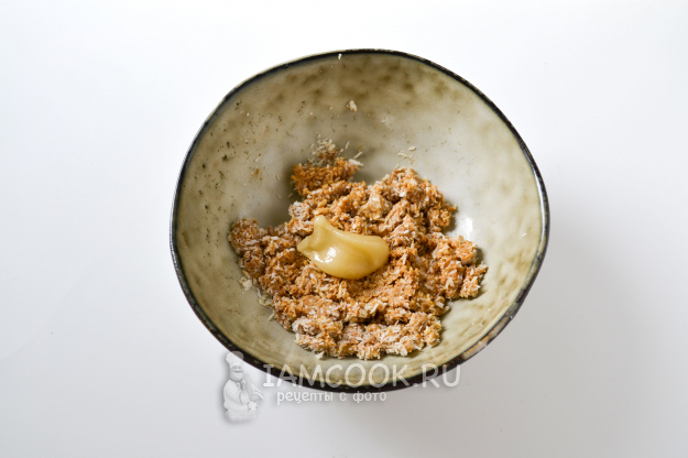 Тщательно перемешайте пасту со стружкой. Добавьте мед.