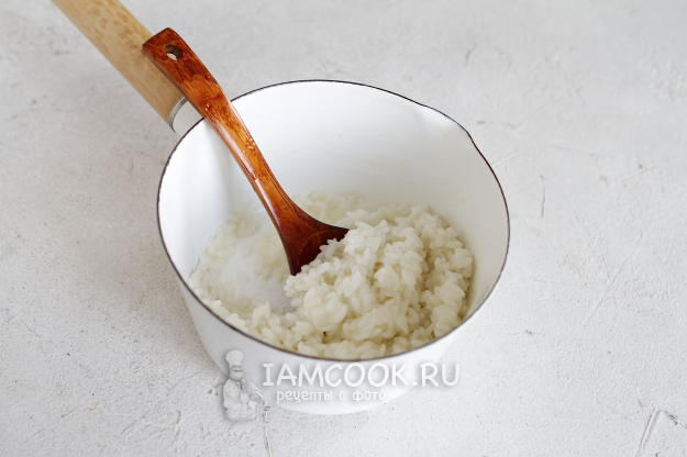 Влейте воду. Доведите до кипения, посолите. Варите рис до готовности.