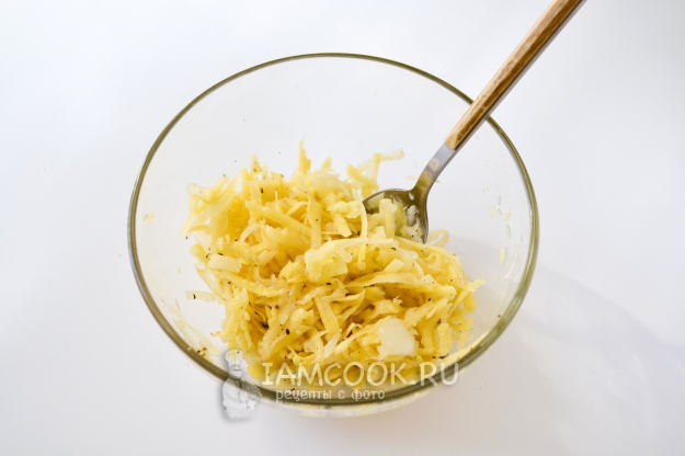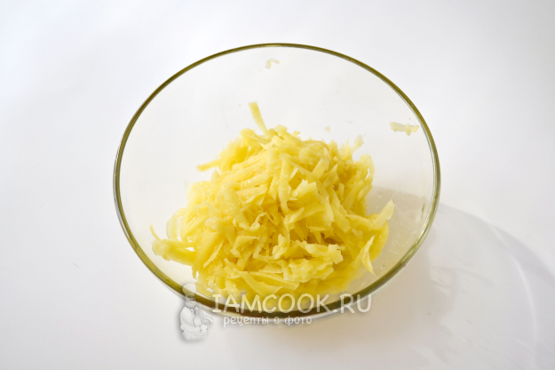 Картошку натрите на средней или крупной терке.