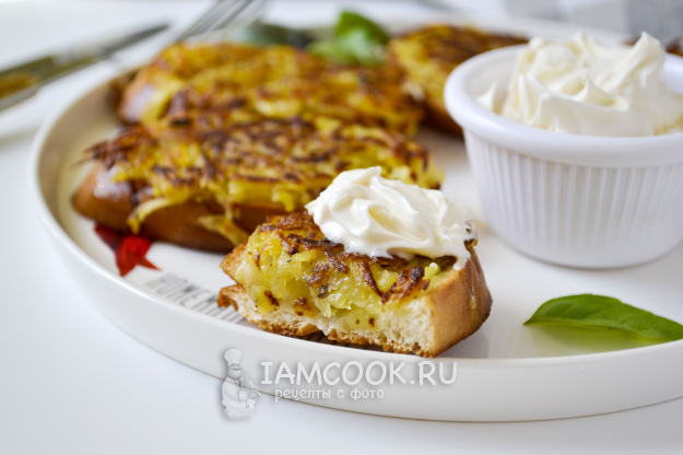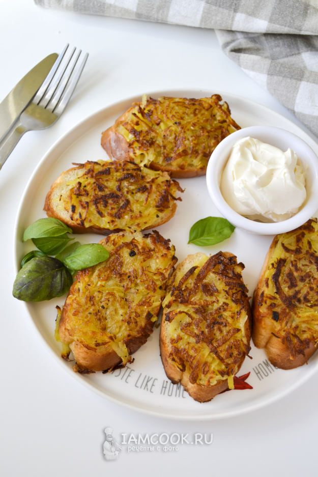 Положите на хлеб картофельную массу. Ложкой прижмите, чтобы получился нетолстый слой.