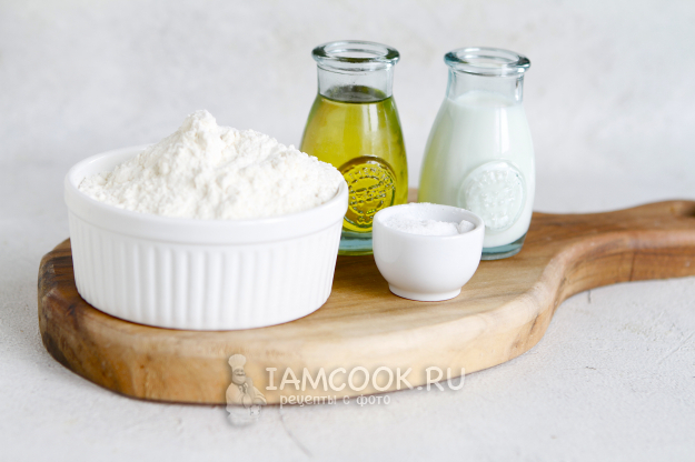 Для приготовления теста на пельмени на молоке без яиц соберите все необходимые продукты по списку.