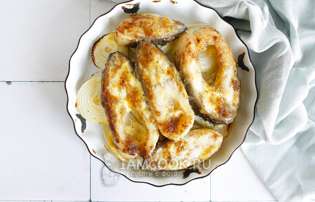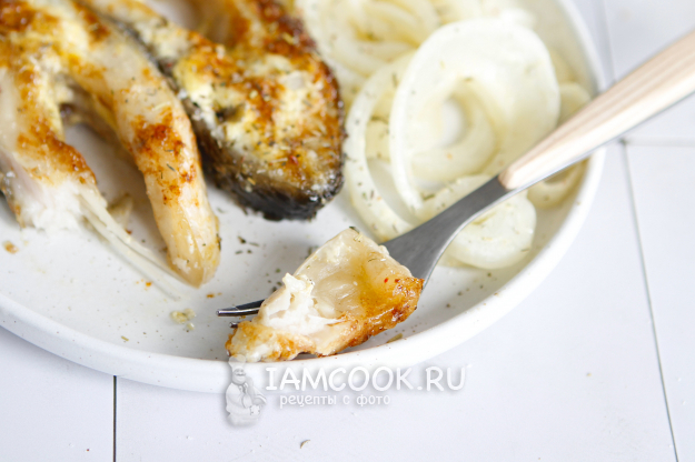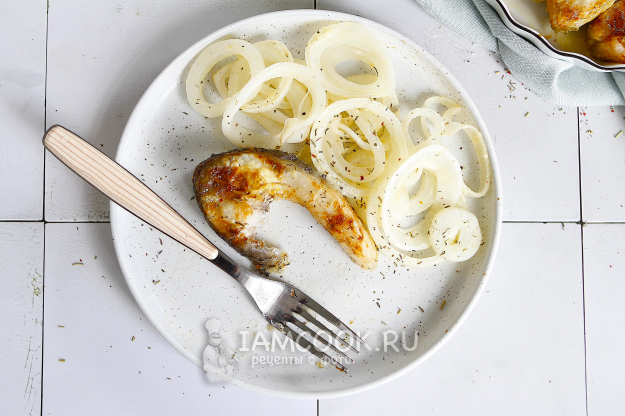 Хорошо разогрейте духовку. Запекайте сазана с луком в духовке 25-30 минут при 185 градусах, до румяной золотистой корочки.