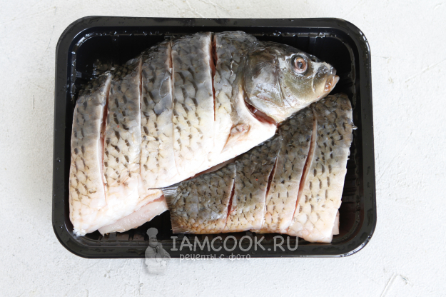 Я покупала сазана в супермаркете. Рыба была уже почищена, разделана и нарезана на порционные кусочки.