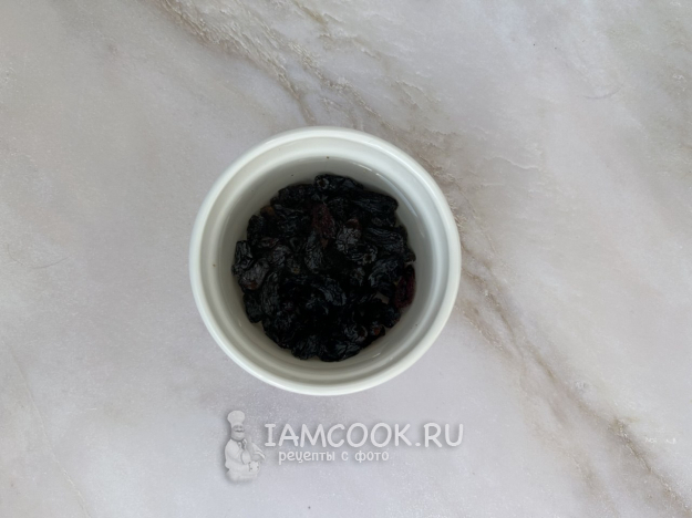 Изюм промойте тёплой водой и обсушите бумажным полотенцем.