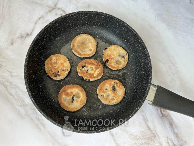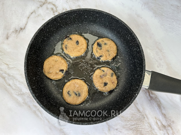 Подготовьте сковороду с толстым дном, добавьте оливковое масло и хорошо её разогрейте. Аккуратно выложите лепёшки на горячую поверхность сковороды, оставляя расстояние друг от друга. Обжаривайте каждую сторону печенья по 3–4 минуты на умеренном огне.