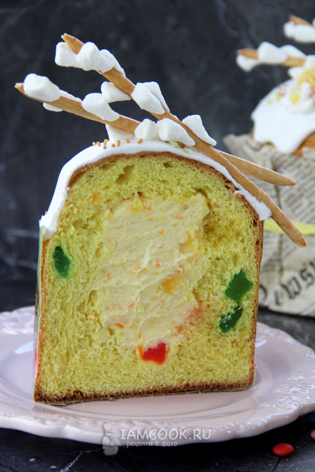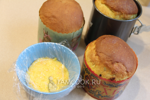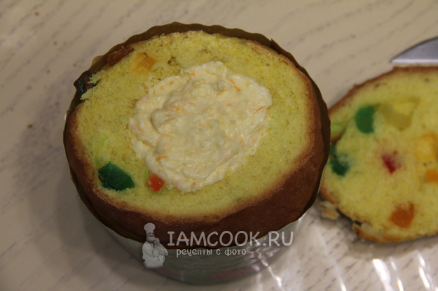 Наполнить кремом куличи. Я наполнила 2 кулича кремом, а один кулич оставила по классике.