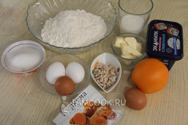 Соберите продукты для приготовления пасхальных куличей с апельсиновой начинкой и цукатами. Все продукты должны быть комнатной температуры.