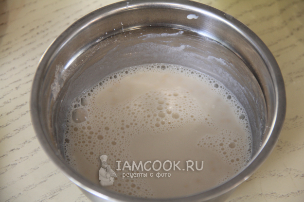 Перемешать массу венчиком. На поверхности молока должна появиться пышная шапка, дрожжи готовы к работе.