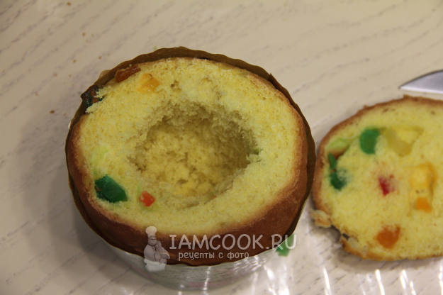С помощью ложки сделать лунку в куличике, вынимая мякиш.