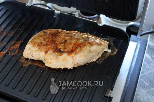 Затем пожарьте. Очень эффектный способ - в электрогриле. На 250 градусах с двусторонним нагревом готовила 6 минут, но время зависит от толщины куска.