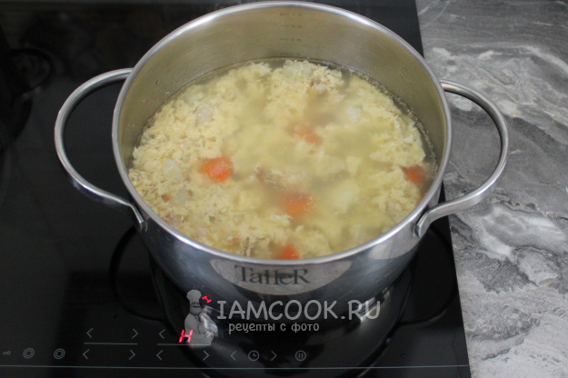 Предлагаю одну поварёшку бульона или воды вылить в миску, эта порция понадобится позднее.