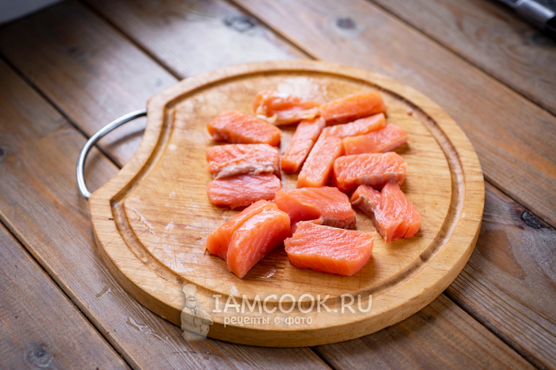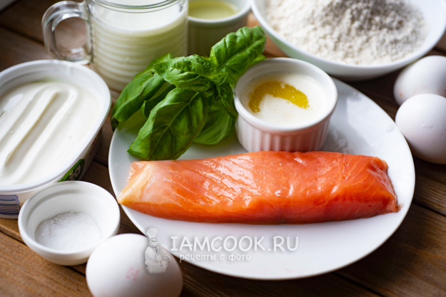 Все ингредиенты для приготовления венских вафель с лососем и яйцом пашот выложите по списку.