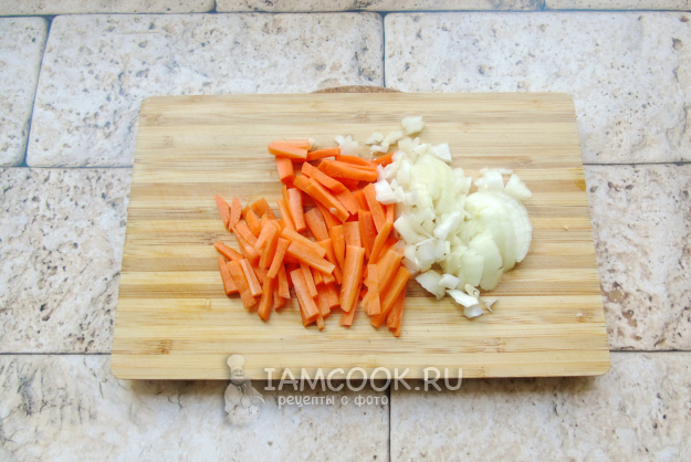 Лук и морковь очистите и помойте. Нарежьте произвольно, но не очень крупно.
