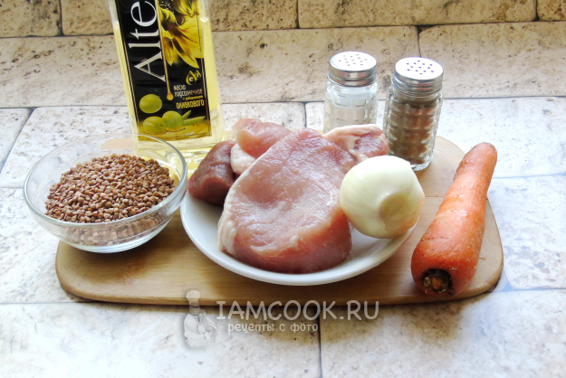 Ингредиенты для приготовления гречки с мясом в рукаве в духовке - перед вами, на фото.