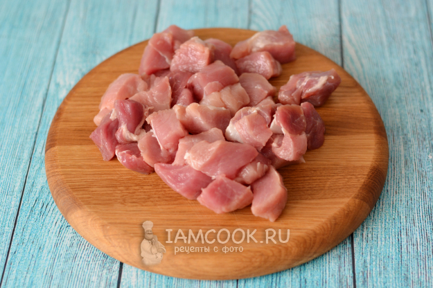 Свинину нарежьте на кубики размером 2-3 сантиметра.