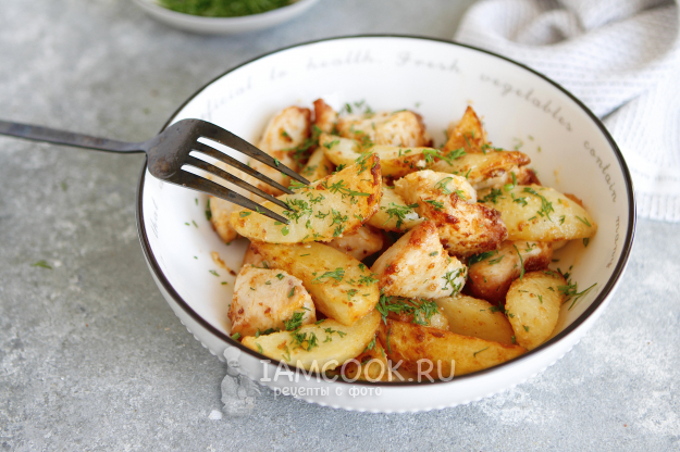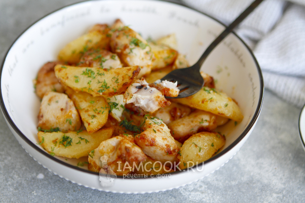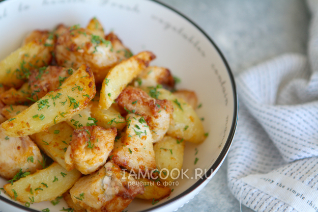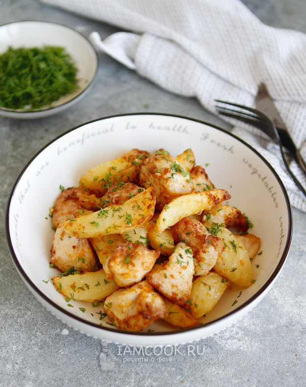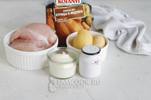 Ну и главное: количество ингредиентов в рецепте указано приблизительное. В моем случае куриного филе чуть больше, чем картофеля. И то, и другое, можно обыграть.