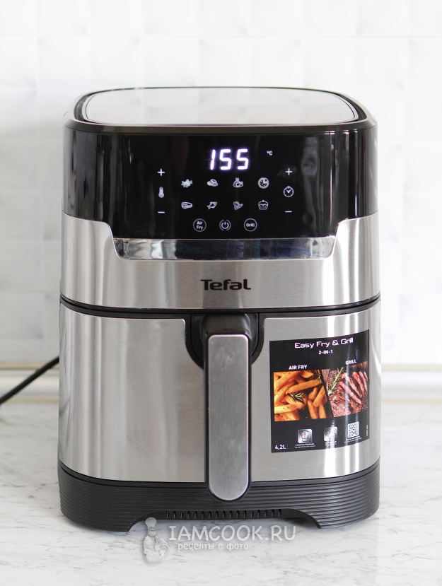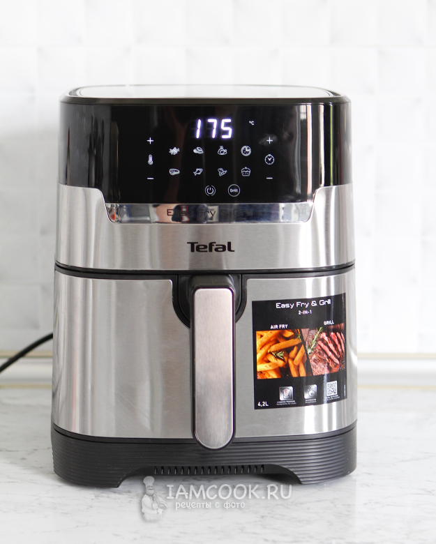 Установила режим Air Fry, нажала на значок "Курица" , выставила температуру 155 градусов. Если у вашей модели нет значка "Курица", то выберите любой другой режим или вручную выставьте нужную температуру.