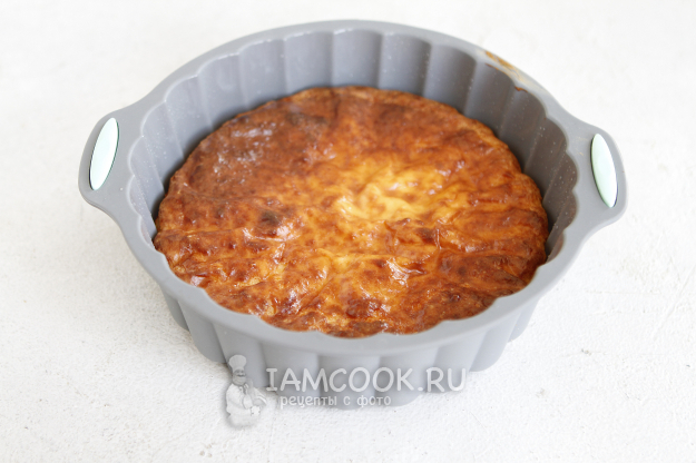 Выпекайте сырный пудинг при 170 градусах 35-40 минут. Готовый пудинг из творога и сыра остудите в форме и аккуратно переложите на блюдо.