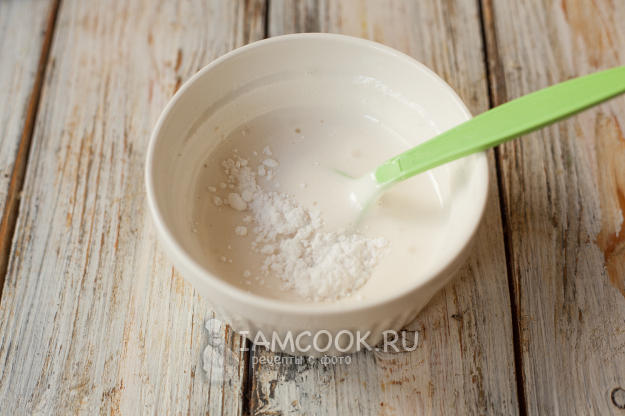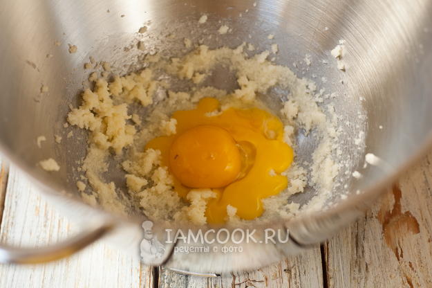 Разотрите всё миксером или вилкой (сахар, конечно же, сейчас не растворится полностью, но начнет подтаивать), а потом добавьте желтки.