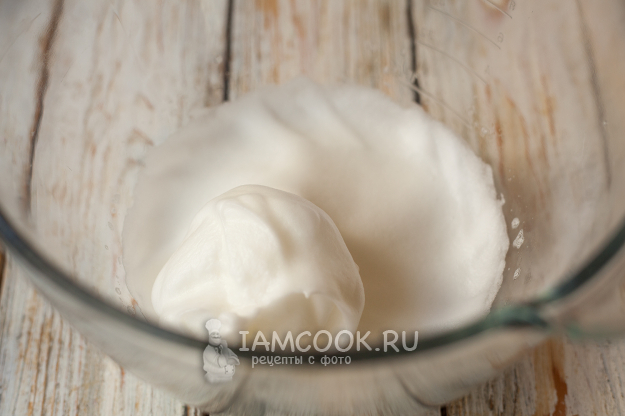 Белки взбейте с солью до устойчивых пиков. Правильность степени взбивания проверить легко. Просто начните аккуратно переворачивать чашу с белками, если они не выпадают и даже не двигаются, вы все сделали правильно.