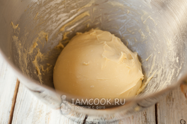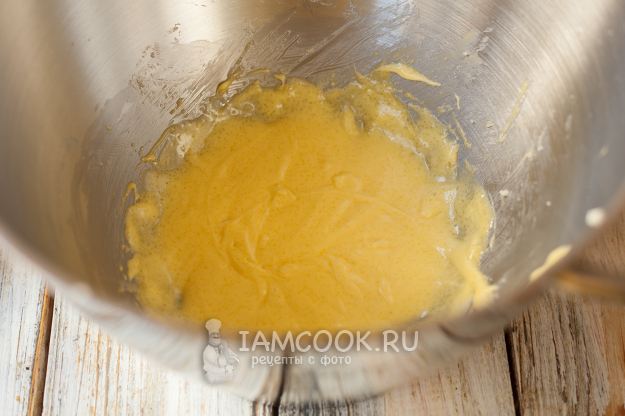 Взбейте всё практически до однородности. Объем массы при этом несколько увеличится, сахар (особенно если он крупный, может раствориться не полностью, на этом этапе приготовления теста это допустимо).