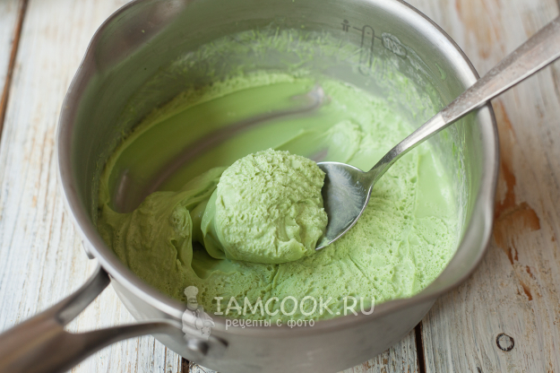 Перемешайте шоколад со сливками ложкой (полной однородности пока можно не добиваться, мелкие кусочки шоколада потом разойдутся в процессе взбивания блендером). Добавьте фисташковую пасту и сливочное масло. Вкус начинки во многом зависит от интенсивности вкуса фисташковой пасты, поэтому количество фисташковой пасты регулируйте самостоятельно. Мне хватило 20 г. Все еще раз перемешайте и пробейте блендером.