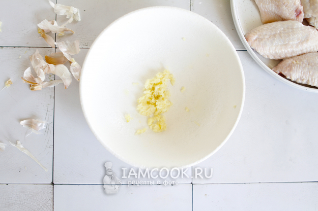 Почистите чеснок и пропустите его через пресс или мелко нашинкуйте.