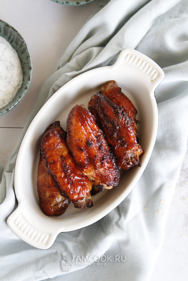Крылышки по этому рецепту можно приготовить разными способами: в духовке, микроволновке или в аэрогриле. Для каждого гаджета нужно выбрать программу, время и температурный режим. Быстрее всего крылья готовятся в аэрогриле.