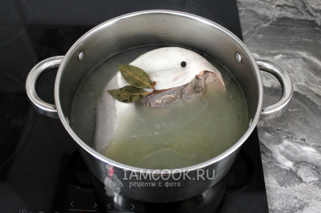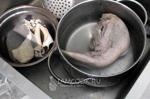 Готовый горячий язык опустите в холодную воду и стяните кожицу.