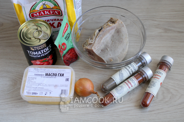 Для варианта гуляша из говяжьего языка подготовьте ингредиенты по списку к рецепту. Чтобы приготовить соус, подходят консервированные томаты, свежие томаты, томатный сок или томатная паста.