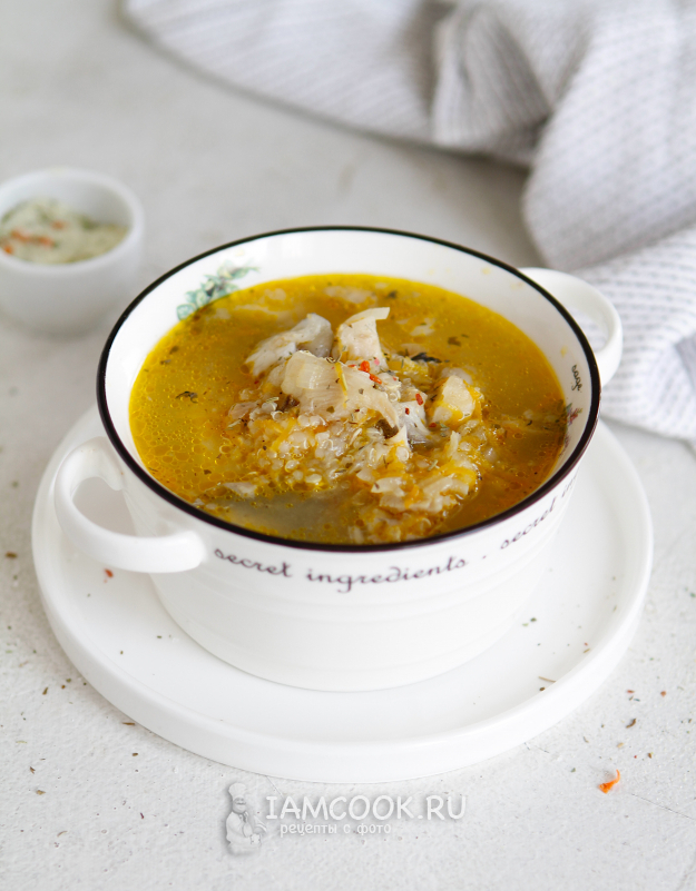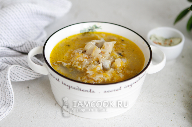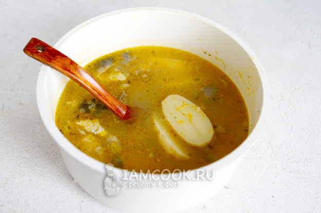 Варите суп до мягкости картофеля. В самом конце добавьте мясо с головы и при необходимости можно еще немного посолить.