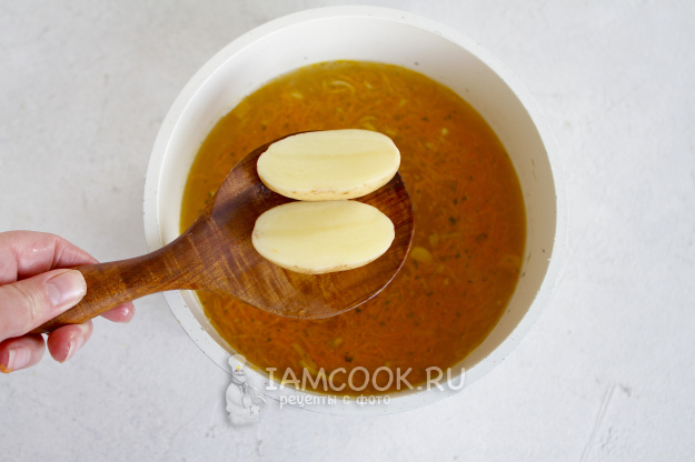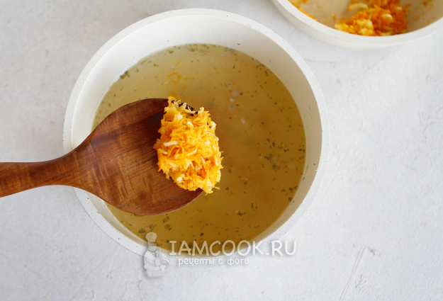 Кастрюлю с бульоном вновь отправьте на плиту. Добавьте в него пассерованные овощи.