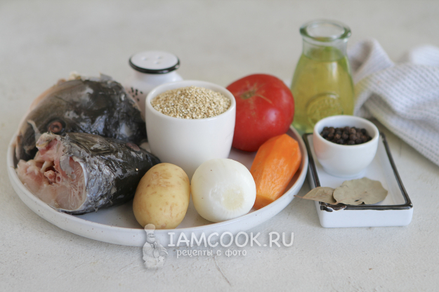 Соберите необходимые продукты и приступим к приготовлению супа из головы сазана.