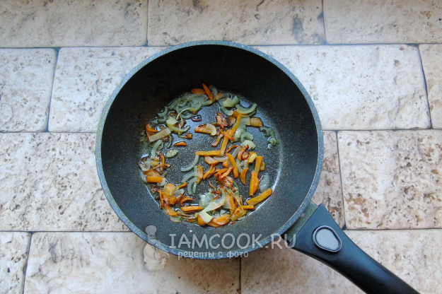 Пассеруйте овощи на небольшом нагреве 7-8 минут.