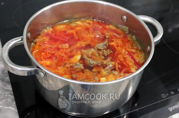 Варите борщ на слабом кипении до готовности всех овощей, т.е. ориентируйтесь на капусту и картофель.