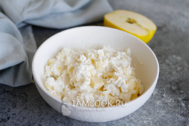 Соединяем творог с яблоком и хорошо всё перемешиваем.