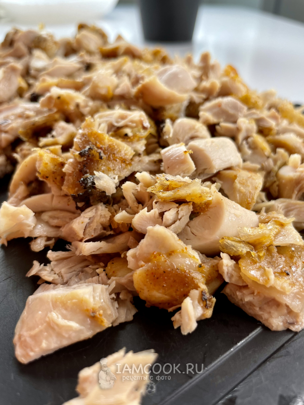 С голени снимаем мясо, косточки откладываем в сторонку. Мясо нарезаем на мелкие кусочки.