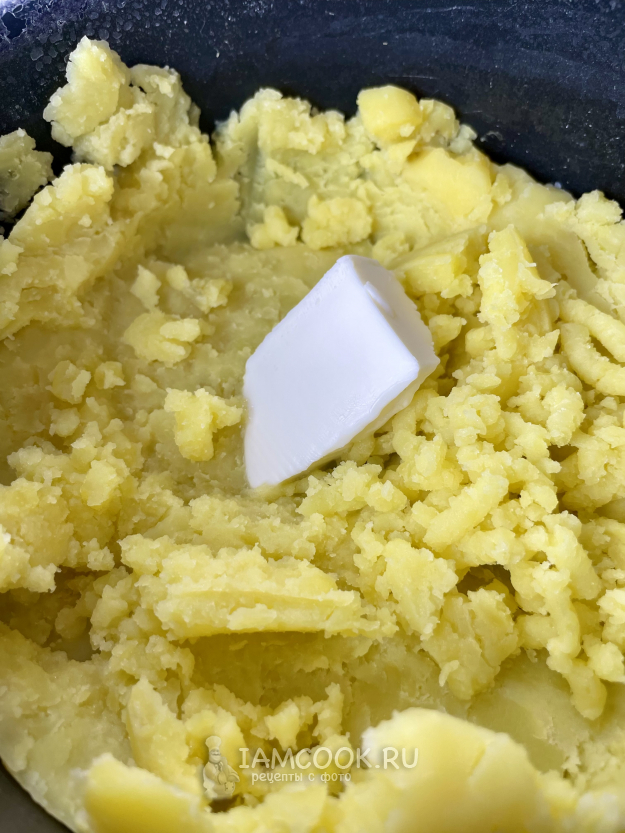 Делаем картофельное пюре. Добавляем сливочное масло.