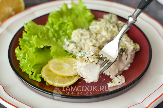 Рыба под соусом «Тартар» готова. Подавайте её к столу сразу же, сопроводив ломтиком лимона и свежими овощами.