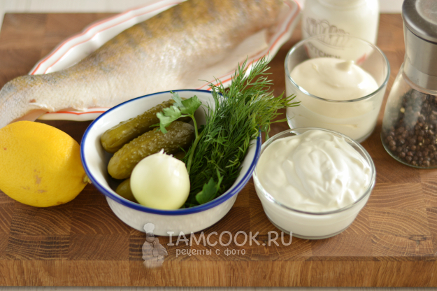 Подготовьте необходимые продукты и приступим к запеканию рыбы под соусом "Тартар" в духовке.