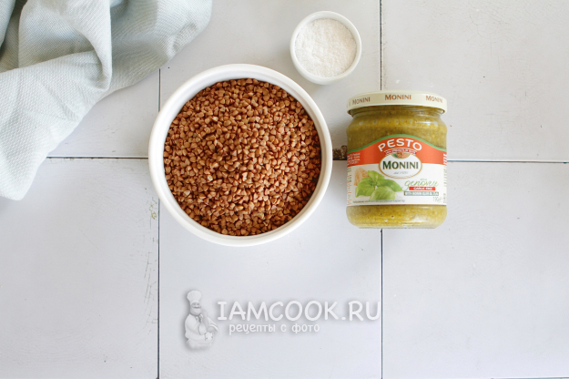 Все необходимые продукты для приготовления гречки с соусом песто - перед вами.