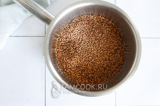 Переложите гречневую крупу в сотейник или небольшую кастрюлю.