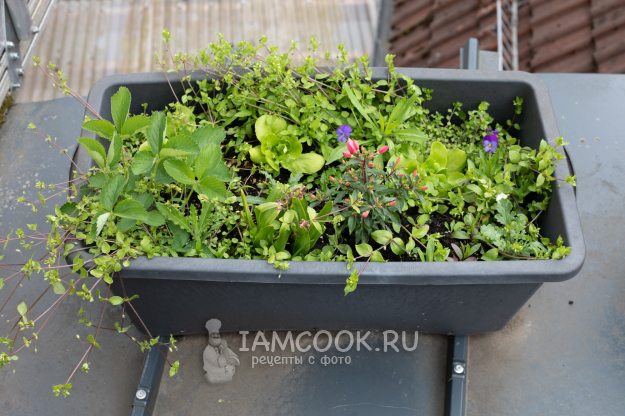 Сбор мокрицы на салат отличается от того, как её удаляют при прополке: нельзя срывать слишком близко от корней. Т.е. те совсем мелкие веточки, которые видно в районе правой фиалки - они не годятся (ну, или собирать мокрицу на этой стадии роста вы будете ооооочень и очень долго, а мыть её будет трудно), брать будем длинные. Их нужно или срезать ножницами, или срывать руками, но так, чтобы не вытягивать подсохшую волокнистую часть стебля, которая находится у самой земли.