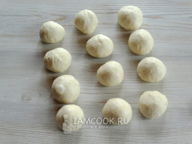 Разделить тесто на маленькие колобки, у меня вышло 12 штук.