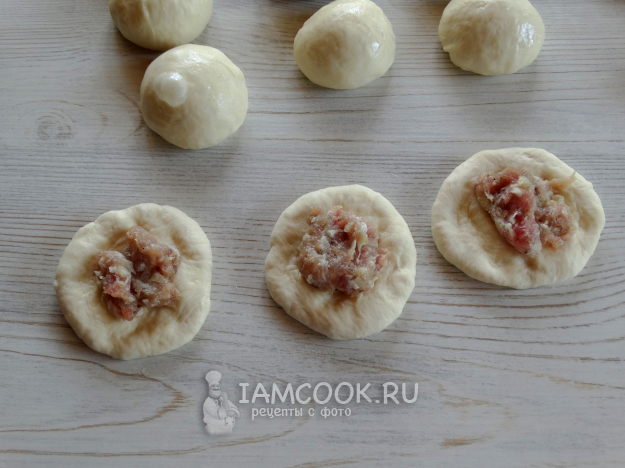 Защипнуть тесто в центре, слегка размять в лепёшку.
