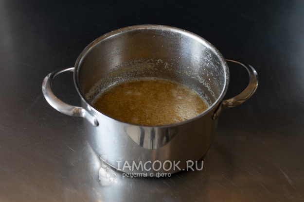 Масло растопим и всыпем туда тёртые сухари. Поварим около минуты на слабом огне. Получится... гм... очень необычная штука. Это не гомогенный соус, но это густая взвесь из покоричневевших сухарей. В общем, масло перестанет быть желтым и прозрачным и станет бежевым и мутным.